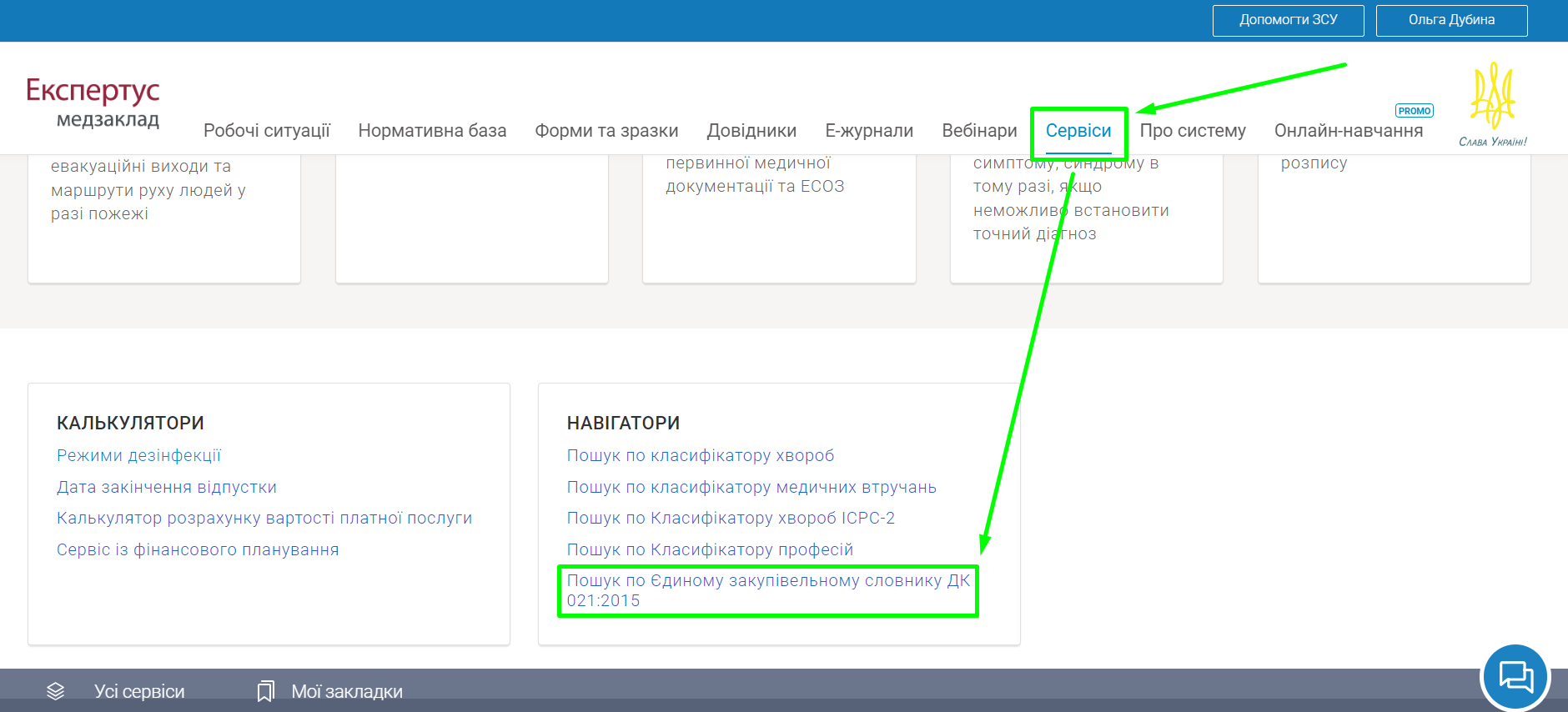 Ми розмістили сервіс «Єдиний закупівельний словник ДК 021:2015» у розділі «Сервіси».