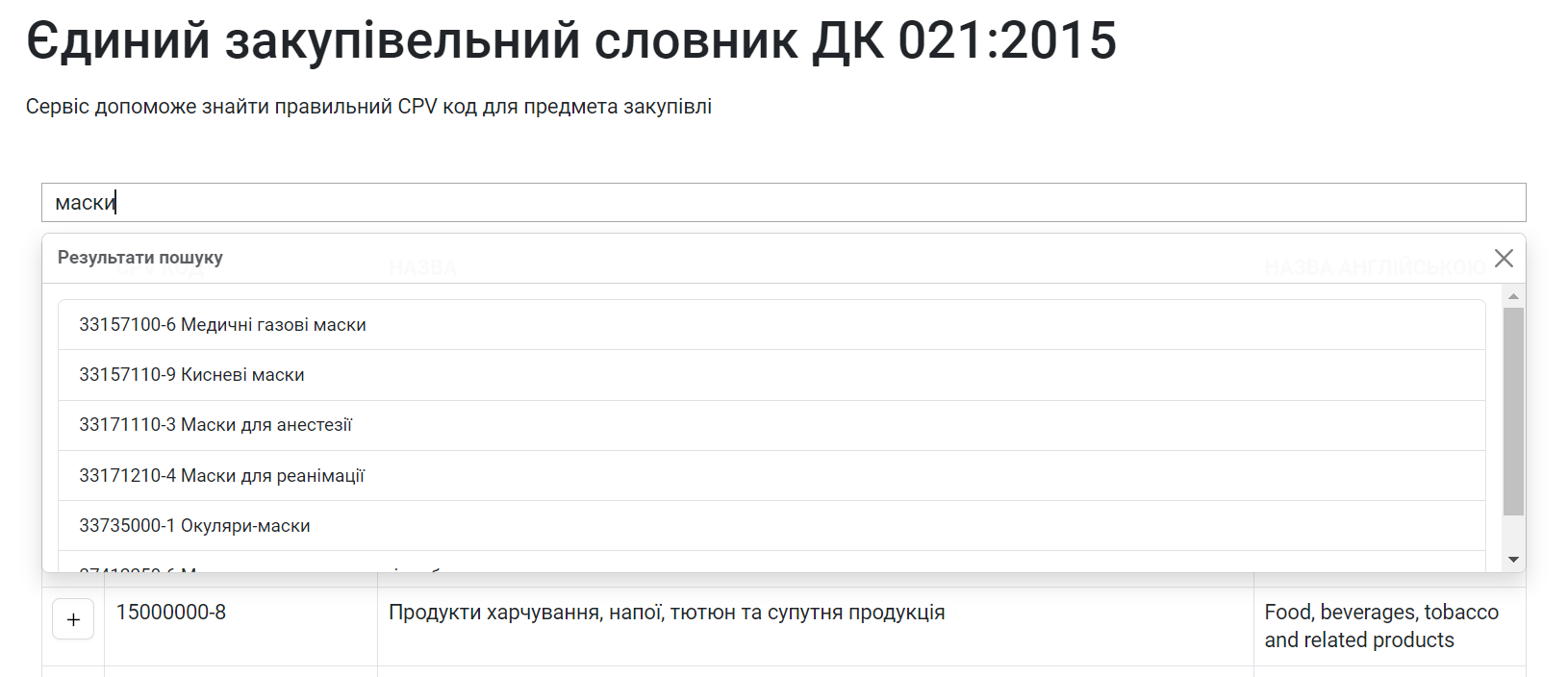 Щоб знайти код ДК 021:2015, почніть вводити найменування предмета закупівлі або код.