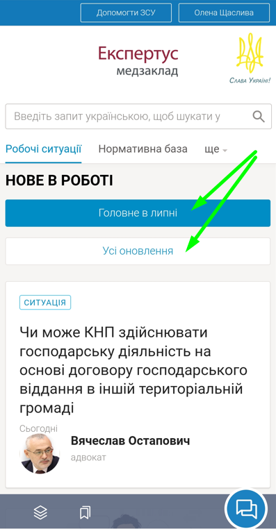 У «Всіх оновленнях» знайдете публікації, які ми додали в систему з моменту вашого попереднього візиту. Тисніть на кнопку на головній сторінці, щоб не пропустити новинки. Найактуальніші зміни в медичному законодавстві за датами їх прийняття теж тут. Для нечастих гостей рекомендуємо також кнопку «Головне за місяць».