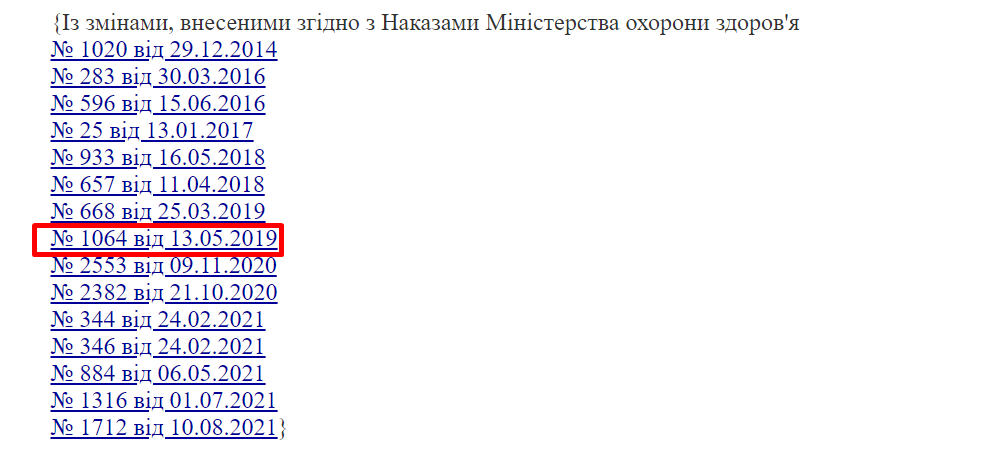Розуміємо, що 2019 рік був давно, тож пригадаймо, що саме змінював наказ МОЗ від 13.05.2019 № 1064 (Таблиця 1).