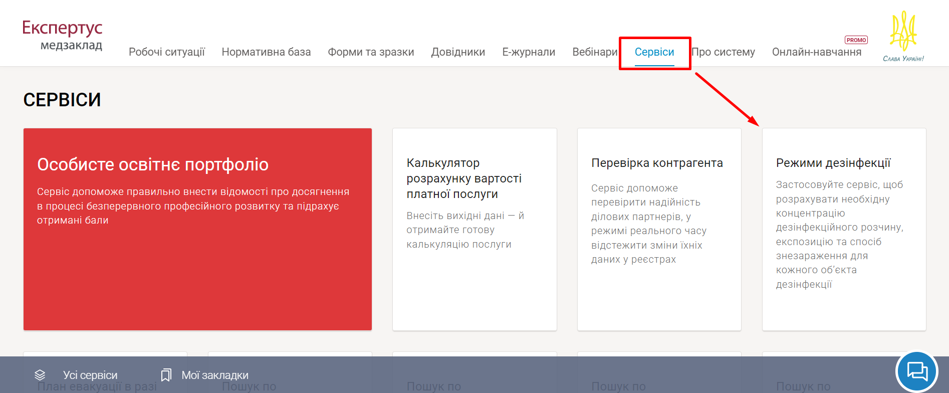 Сервіс «Режими дезінфекції» ми розмістили в розділі «Сервіси».