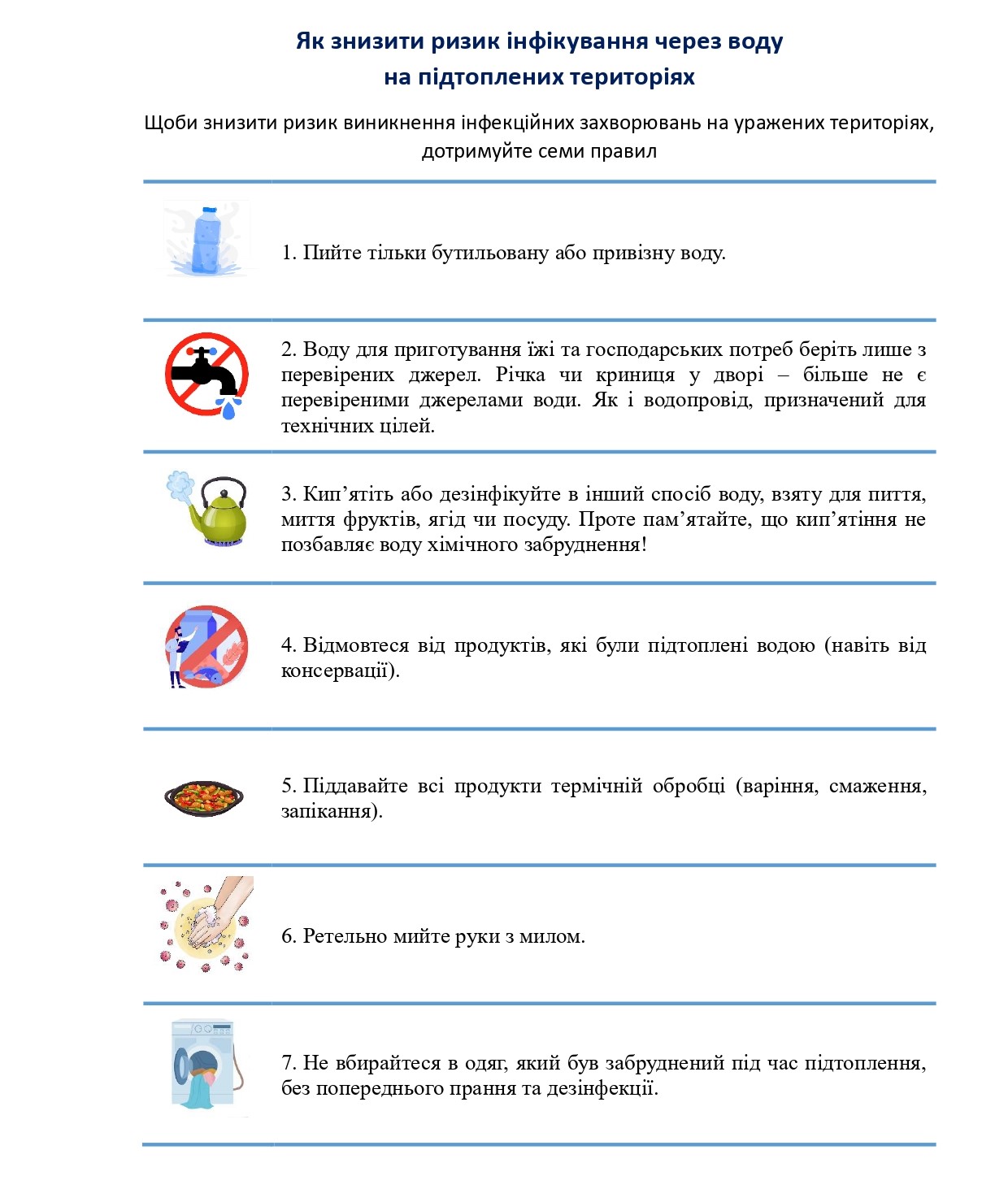 Щоби знизити ризик виникнення інфекційних захворювань на підтоплених територіях, дотримуйте семи правил