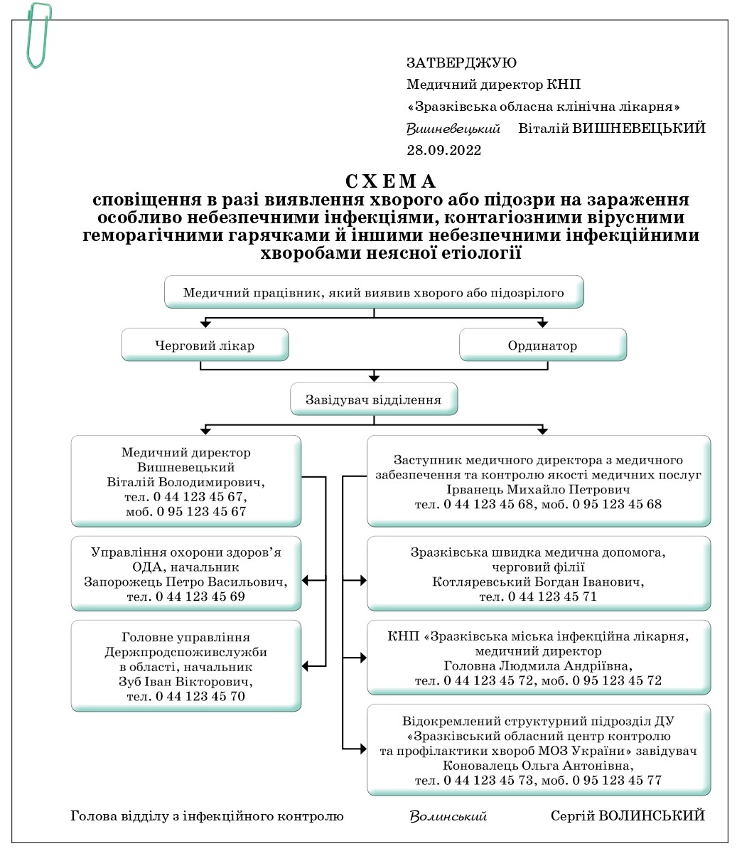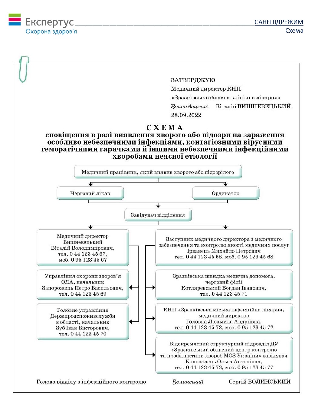 Схема сповіщення в разі виявлення хворого або підозри на зараження особливо небезпечними інфекціями
