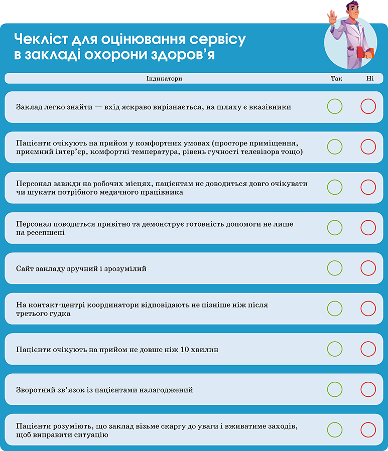 Чекліст для оцінювання сервісу в закладі охорони здоров’я