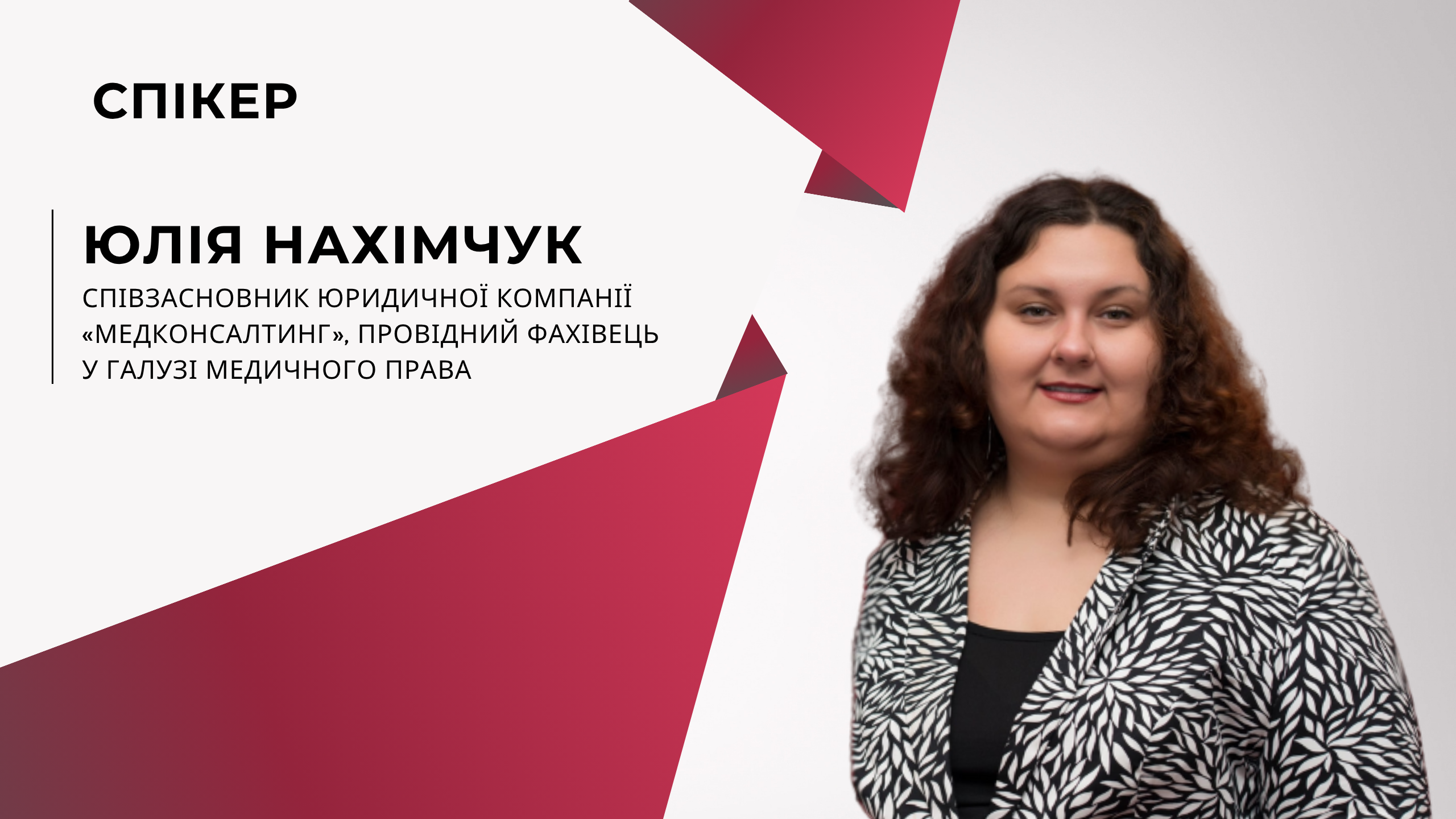 Лектор: Юлія НАХІМЧУК, співзасновник юридичної компанії «Медконсалтинг», провідний фахівець у галузі медичного права Вебінар відбудеться 13.11.2025 Початок трансляції об 11:00  |